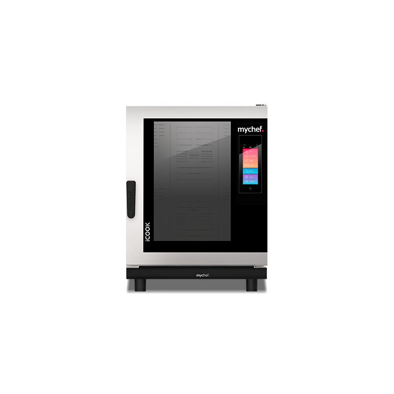 Darüber hinaus ist dieser Kombidämpfer mit einem Garzeitsystem ausgestattet. Besonders intuitiv und einfach zu bedienen, verfügt er über ein manuelles Bedienfeld. Er besitzt auch zwei Umkehrmotoren, eine Halogenlampenbirne und eine doppelt verglaste Tür. Schließlich ist seine Dampffunktion manuell mit Timer.