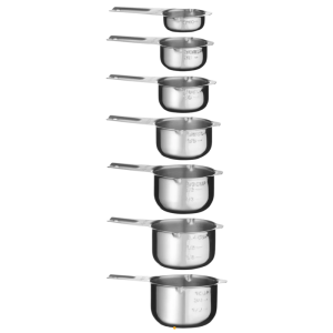 Dieses Set aus 7 Messbechern bietet eine Auswahl an Größen, von 30 ml bis 240 ml, und ermöglicht eine präzise Messung für eine Vielzahl von Rezepten. Dank ihres robusten und praktischen Designs sind diese Messbecher eine kluge Investition für Profis, die ihre Effizienz in der Küche optimieren und gleichzeitig Präzision bei der Zubereitung ihrer Gerichte gewährleisten möchten.