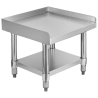 Hergestellt aus hochwertigem Edelstahl, bietet dieser Ständer nicht nur hohe Haltbarkeit und Widerstandsfähigkeit in den anspruchsvollsten Küchenumgebungen, sondern auch eine unvergleichliche Reinigungsfreundlichkeit, die entscheidend ist, um die hohen Hygienestandards in der professionellen Gastronomie aufrechtzuerhalten. Die silberne/edelstahlfarbene Oberfläche verleiht dem Arbeitsbereich einen Hauch von Eleganz und ist gleichzeitig äußerst funktional und praktisch.