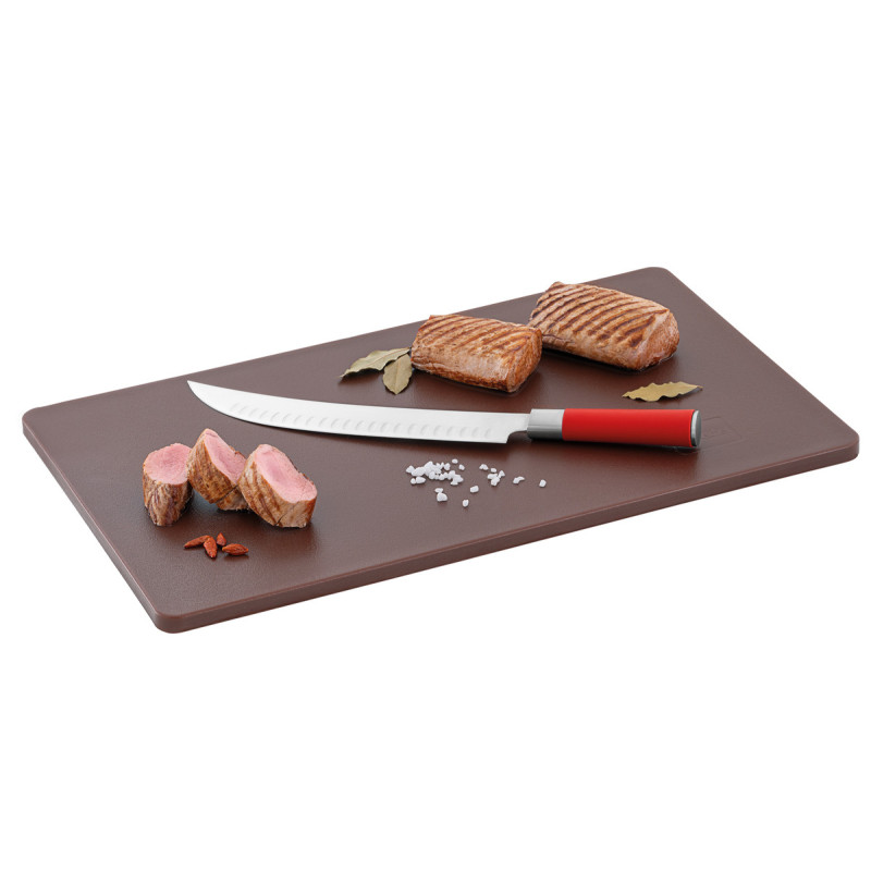Es ist mit einer glatten Seite und einer Seite mit Rille ausgestattet, um Abflüsse zu vermeiden. Beide Seiten eignen sich perfekt zum Schneiden. Es kann vorzugsweise im Kurzprogramm in der professionellen Spülmaschine gewaschen werden. Es ist ideal für Gastronomieprofis.