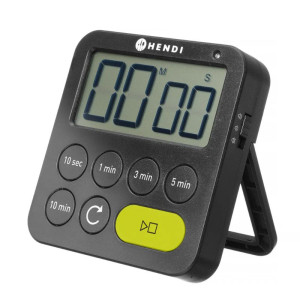 Der Hendi Küchentimer ist mit einem klappbaren Ständer, einem Aufhängeloch und einem Magneten ausgestattet, was eine maximale Flexibilität bei der Platzierung bietet. Platzieren Sie ihn auf einer Metalloberfläche, hängen Sie ihn auf oder stellen Sie ihn auf eine Arbeitsfläche, um die Zeit im Blick zu behalten, ohne Ihren Arbeitsbereich zu überladen.