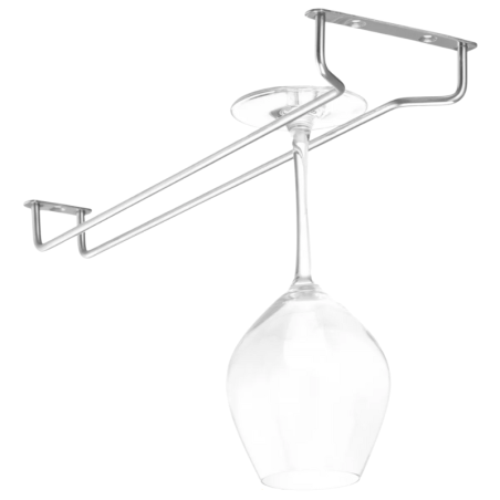 The mounting system of this glass holder is designed for easy installation. Supplied with screws and dowels, it can be quickly fixed under a shelf, making your glasses accessible while maximizing the use of vertical space. The single-row design allows easy access and secure storage of glasses, thus reducing the risk of damage during intense service hours.