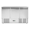 It features a static cooling system with fan with a Dixell electronic thermostat that ranges between 0°C and +10°C. This positive table is equipped with 3 doors to store all types of food.