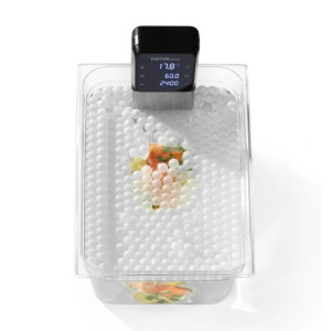 The Sous Vide Cooking Balls are an essential asset to reduce evaporation and water splashes, common issues during long sous vide cooking sessions. This feature is essential to maintain a constant water level, thus ensuring optimal cooking results without the need for constant monitoring. Additionally, the balls help keep vacuum bags submerged and well-positioned, allowing for even cooking of food.