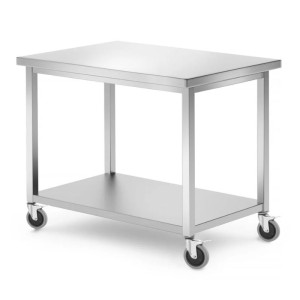 Ideal for professional kitchens, this mobile table will integrate perfectly into different environments, whether for food preparation or as an additional station during intense services. Offering both resistance and adaptability, this model will quickly become a central element in the daily management of culinary tasks.