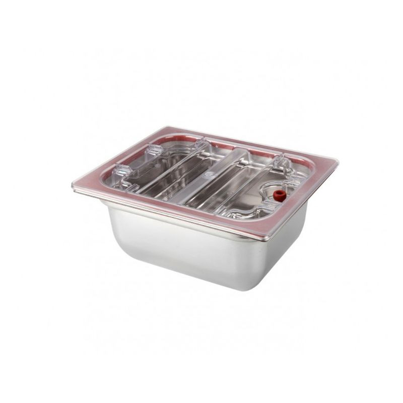 It is possible to pack large volumes, thanks to the large recess at the bottom and the transparent dome lid. With clips in the chamber to hold the bags in place during vacuum sealing. Pump capacity: 333.3 L/min. Chamber dimensions: 425 x 457 x (H) 100 mm.