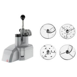 The set consists of a vegetable cutter accessory and four interchangeable stainless steel discs, including two grating discs of 3 and 7 mm and two slicing discs of 2 and 4 mm. This choice of sizes allows professionals to precisely select the desired cut for various preparations, from salads to garnishes, while ensuring exceptional cutting quality.