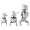 Doté d'une construction robuste en aluminium et inox, le mélangeur planétaire combine durabilité et style avec une finition argentée élégante qui s'intègre parfaitement dans toute cuisine professionnelle. La facilité d'utilisation est au cœur de la conception de cet équipement. Il est équipé d'un système de levier pratique qui facilite le positionnement du bol et permet un accès direct aux lames pour un mélange optimal.