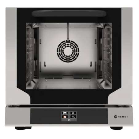 Découvrez l'excellence et l'efficacité en cuisine avec le Four à Convection Compact Touch Screen équipé d'un humidificateur. Conçu spécifiquement pour les professionnels de la restauration, ce four compact combine technologie de pointe et performances robustes, le tout intégré dans une structure en acier inoxydable AISI 304 de haute qualité. Grâce à sa finition extérieure en inox et sa porte battante vitrée dotée d'un double vitrage, le four assure une isolation optimale, tout en maintenant la surface de la porte froide au toucher, garantissant ainsi sécurité et efficacité énergétique.