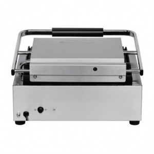 Doté d'une puissance de 2200 watts et opérationnel entre 100°C et 300°C, ce grill permet un contrôle précis de la température grâce à des commandes simples et directes. L'uniformité de la chaleur assure une cuisson parfaite et constante, favorisant une qualité supérieure du plat servi. La zone unique de chauffe optimise l'espace de cuisson, rendant ce modèle particulièrement adapté aux cuisines avec des espaces restreints.