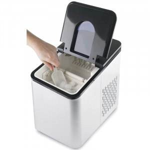 Deze IJsmachine is ideaal voor horecaprofessionals. Hij heeft een waterreservoir met een capaciteit van 2,2 L en kan tot 12 Kg ijsblokjes per dag produceren, oftewel 9 cilindrische ijsblokjes per cyclus. De werking is vrij eenvoudig, aangezien het voldoende is om het waterreservoir te vullen om binnen enkele minuten ijsblokjes te verkrijgen. Deze professionele ijsmachine heeft namelijk geen waterafvoer nodig.