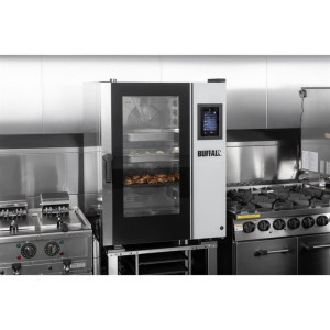 De Combi-oven met Touchscreen Buffalo herdefinieert uitmuntendheid in professionele keukens met zijn innovatieve ontwerp en gebruiksgemak. Deze oven verhoogt de normen van het koken door efficiëntie, veelzijdigheid en geavanceerde technologieën te combineren. Geschikt voor een omgeving waar de vraag hoog is en tijd kostbaar, garandeert hij ongeëvenaarde prestaties.